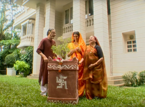 A snapshot from Kyunki Saas Bhi Kabhi Thi – Smriti Irani worships the tulsi plant in the garden of Krishna Bungalow.